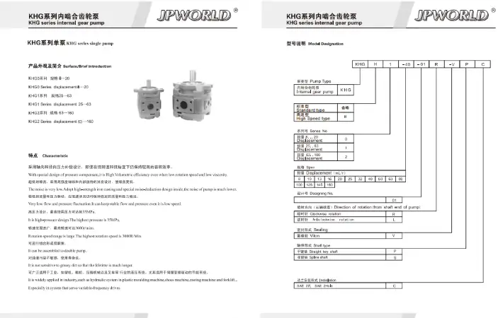 沃特JPWORLD內嚙合齒輪泵HG1-25-01R-VPC高壓泵HG0/1/2伺服油泵