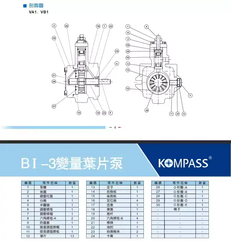KOMPASS康百世葉片泵VFA1-12/15/20/25F-A1油泵VFD1-30F/40F-A3
